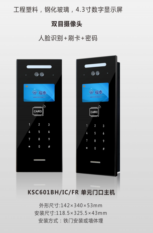 支持對講開鎖、IC刷卡開鎖、手機NFC開鎖、人臉開鎖多種開鎖方式